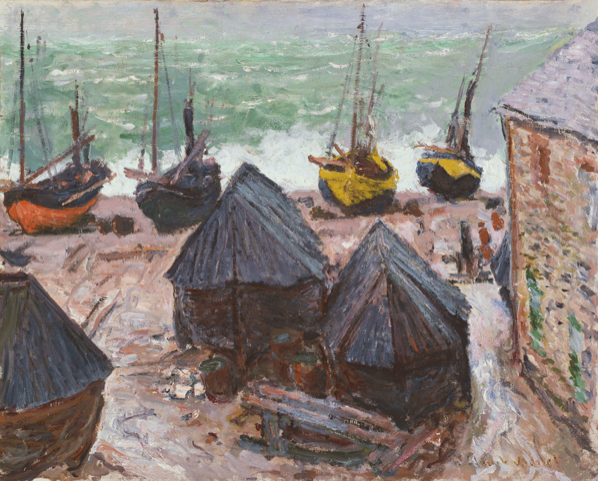 Claude Monet (French, 1840–1926). Boats on the Beach at Étretat, 1885. Oil on canvas; 65.5 x 81.3 cm. The Art Institute of Chicago, Charles H. and Mary F. S. Worcester Collection, 1947.95.