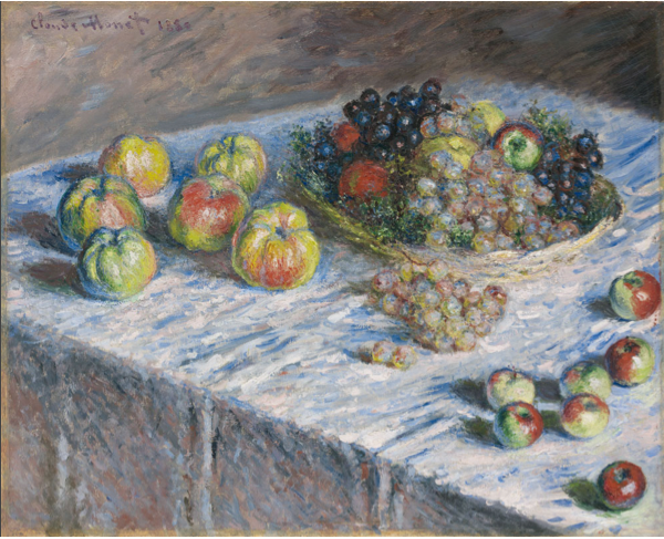Claude Monet (French, 1840–1926). Apples and Grapes, 1880. Oil on canvas; 66.2 x 82.3 cm. The Art Institute of Chicago, Mr. and Mrs. Martin A. Ryerson Collection, 1933.1152.