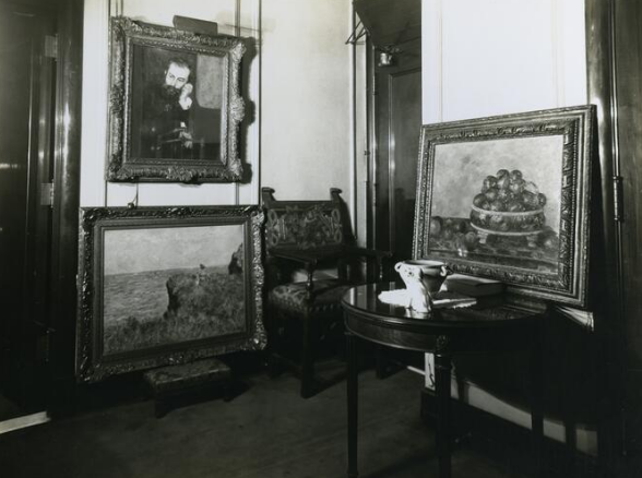 Monet’s Cliff Walk at Pourville (1882), on display in Mrs. Lewis Larned (Annie Swan) Coburn’s Blackstone Hotel apartment, is framed in a “Durand-Ruel” Régence Revival frame. Art Institute of Chicago Archives.