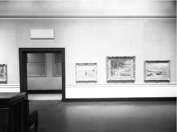 Installation of Monet's Cliff Walk at Pourville in A Century of Progress Exhibition of Paintings and Sculpture, Art Institute of Chicago, May 23–November 1, 1933. Art Institute of Chicago Archives.