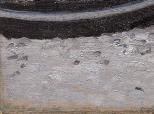 Detail of Monet’s The Beach at Sainte-Adresse (1867) showing charcoal lines over the white paint near the edge. The Art Institute of Chicago, 1933.439.