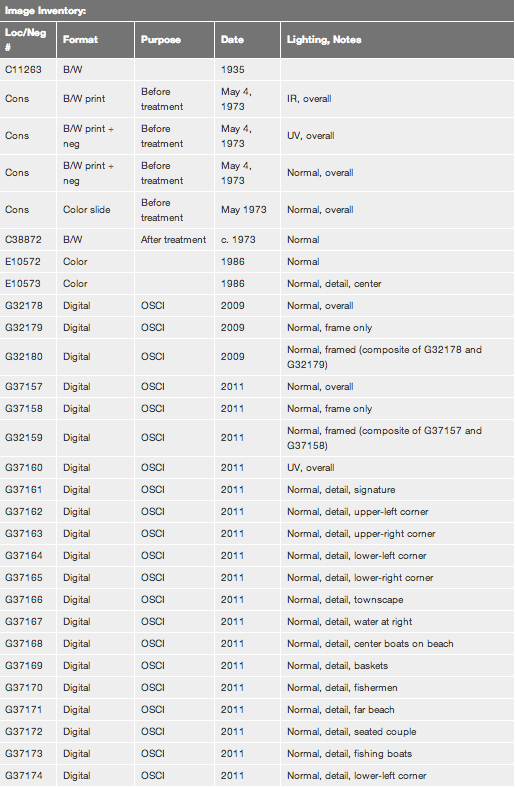 The image inventory compiles records of all known images of the artwork on file in the Conservation Department, the Imaging Department, and the Department of Medieval to Modern European Painting and Sculpture at the Art Institute of Chicago (fig. 13.74).