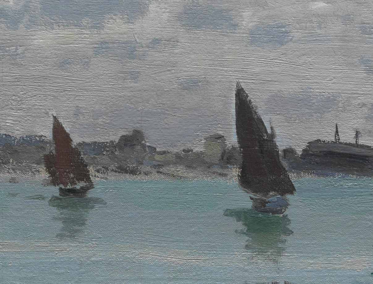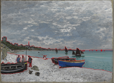 Detail of Monet’s The Beach at Sainte-Adresse (1867) showing where the artist added vessels over wet paint. The Art Institute of Chicago, 1933.439.