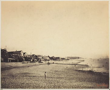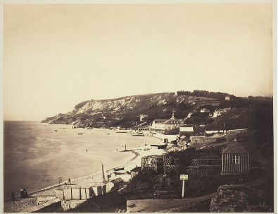 Gustave Le Gray (French, 1820–1884). The Beach at Sainte-Adresse, with the Dumont Baths, from the album Vistas del mar, 1856/57. Albumen print from wet collodion on glass negative; 31.7 × 41 cm (12 1/2 × 16 1/8). The Art Institute of Chicago, Hugh Edwards Fund, 1971.577.8.