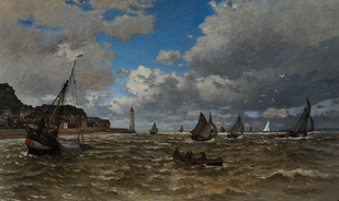 Claude Monet (French, 1840–1926). Mouth of the Seine at Honfleur, 1865. Oil on canvas; 89.5 × 150.5 cm (35 1/4 × 59 1/4 in.). The Norton Simon Foundation, F.1973.33.2.P. Image courtesy of The Norton Simon Foundation.