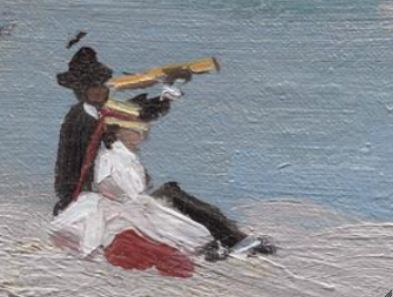 Detail of the seated couple in Monet’s The Beach at Sainte-Adresse (1867) showing the artist’s use of thick white paint. The Art Institute of Chicago, 1933.439.