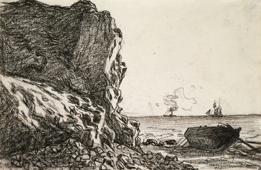 Claude Monet (French, 1840–1926). Cliffs and Sea, Sainte-Adresse, 1865. Black chalk on off-white laid paper; 206 × 314 mm (8 1/8 × 12 3/8 in.). The Art Institute of Chicago, Clarence Buckingham Collection, 1987.56.