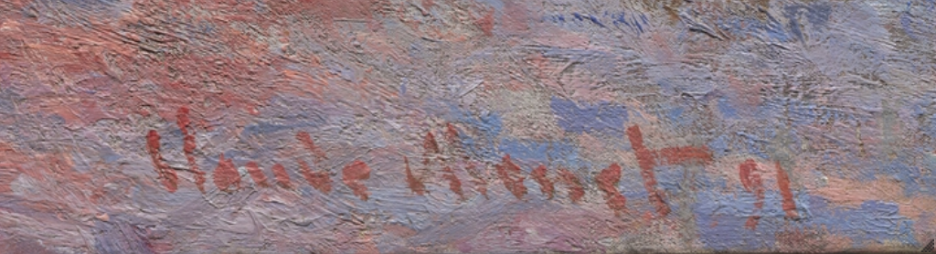 Signed and dated: Claude Monet 91 (lower left, in light red paint826)(fig. 1). The signature and date were added when the underlying paint layers were already dry (fig. 2).