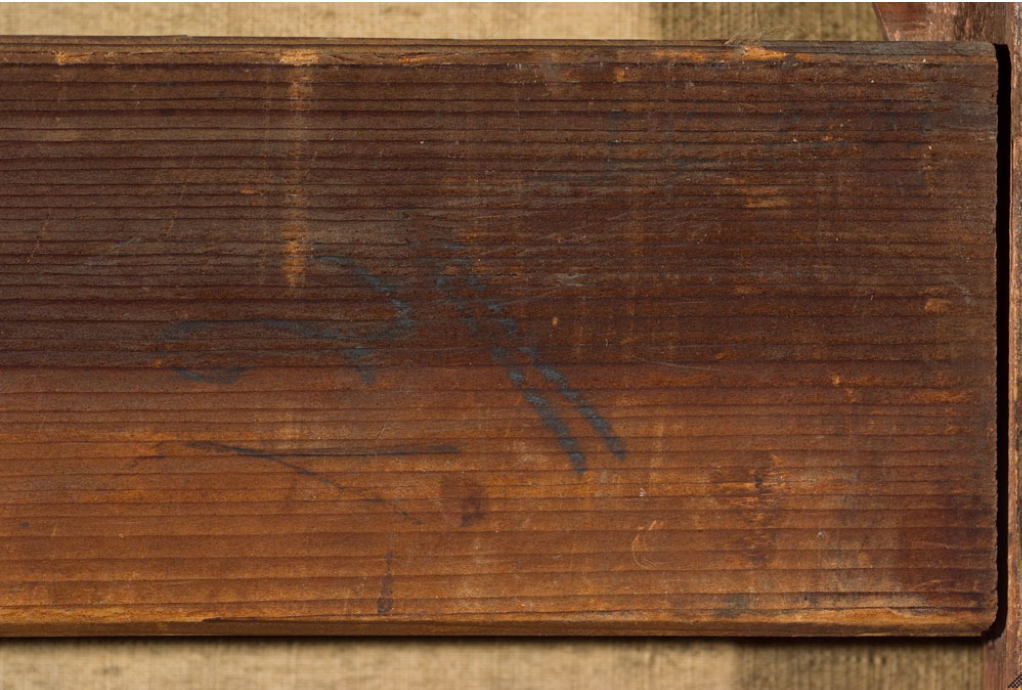 Image of the back of Monet’s Stack of Wheat (Thaw, Sunset) (1890/91) showing the stretcher. The Art Institute of Chicago, 1983.166.