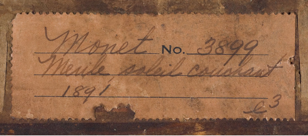Detail of the bottom tacking edge of Monet’s Stack of Wheat (Thaw, Sunset) (1890/91). The Art Institute of Chicago, 1983.166.