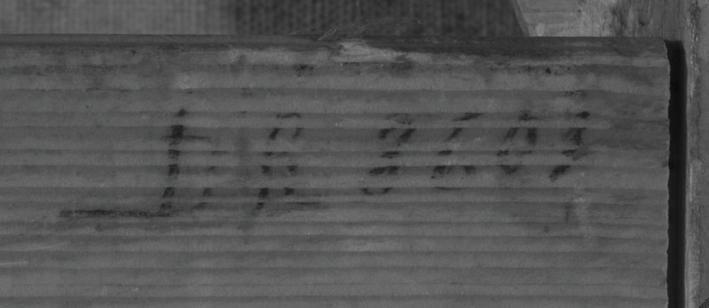 Photomicrograph of the signature in Monet’s Stack of Wheat (Thaw, Sunset) (1890/91) showing a small area of restoration. The Art Institute of Chicago, 1983.166.