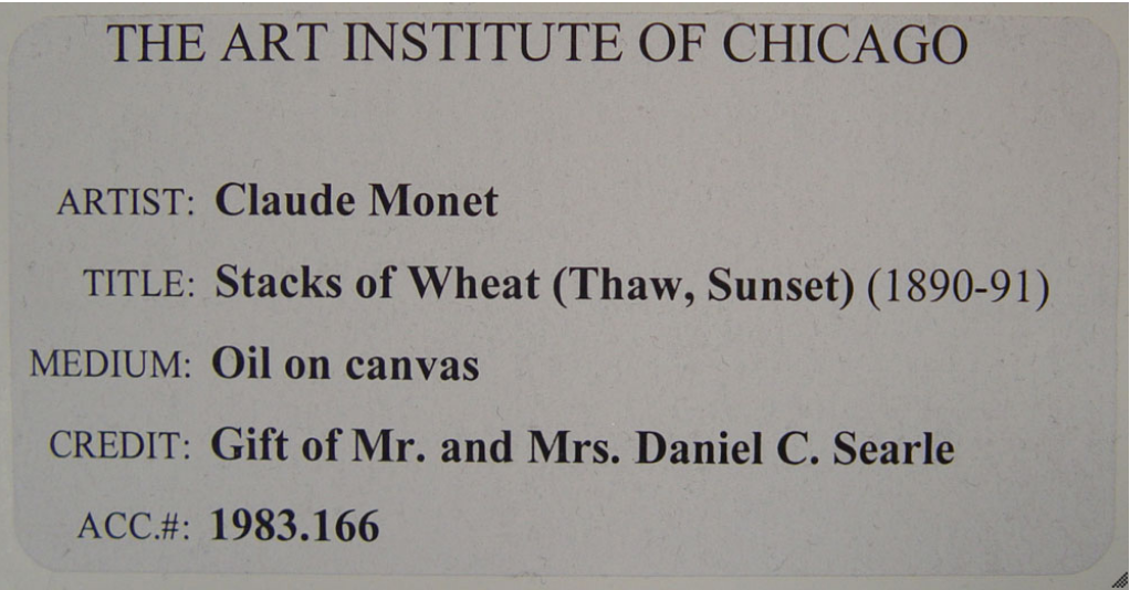 Content: Museum of Fine Arts / Boston, MA 02115 / W.1284 GRAINSTACK / Art I., Chicago (fig. 15.23)