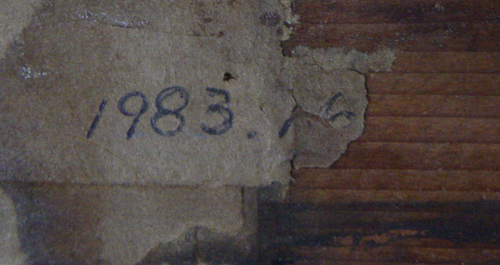 In 1996, a [glossary:synthetic varnish] layer was removed. This revealed old blanched varnish residues in the interstices of the impasto in the stack and in the hills in the center of the composition, which were removed with solvent. The earlier restorations were not removed.844