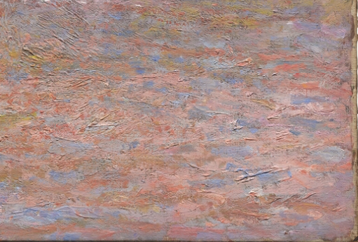 Detail of the sky in Monet’s Stack of Wheat (Thaw, Sunset) (1890/91) showing the buildup of the paint layers. The Art Institute of Chicago, 1983.166. Interactive image.