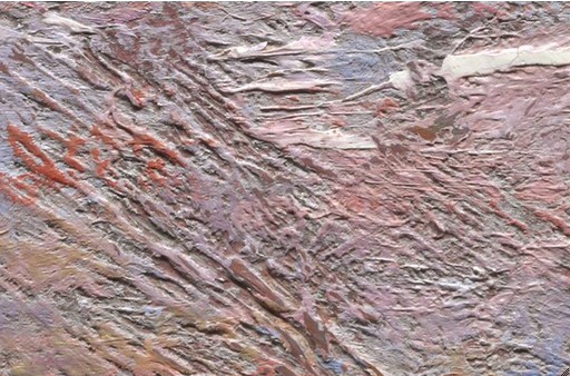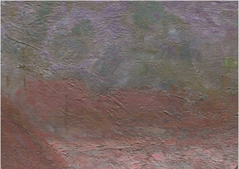 Detail of the field in Monet’s Stack of Wheat (Thaw, Sunset) (1890/91) showing an area where the artist wiped or scraped the soft paint. The Art Institute of Chicago, 1983.166.