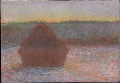 Monet’s Stack of Wheat (Thaw, Sunset) (1890/91). The Art Institute of Chicago, 1983.166. Interactive image.