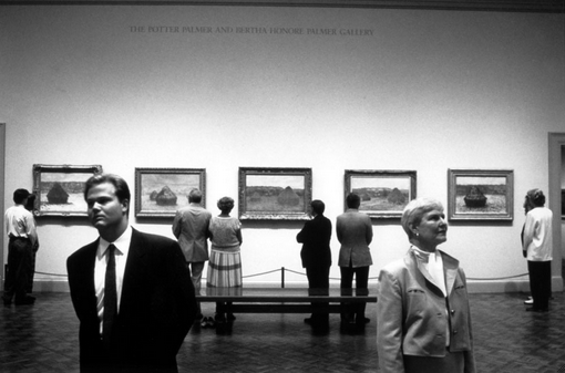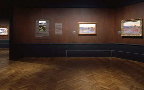 Installation of Monet’s Stack of Wheat (Thaw, Sunset) (1890/91) in Claude Monet, 1840–1926, Art Institute of Chicago, July 22–Nov. 26, 1995. Institutional Archives, Art Institute of Chicago.