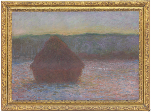 Monet’s Stack of Wheat (Thaw, Sunset) (1890/91) in its current frame. The Art Institute of Chicago, 1983.166.